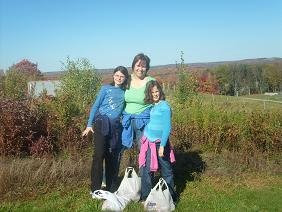 One of our autumn rituals is to go apple-picking at a local orchard, coming home with bagfuls for eating and making pies. I use a recipe from my grandmother’s little old Lithuanian ladies’ group cookbook, with honey, raisins and nuts. Yum! I have to confess, though, I cheat and use the premade pie crust from the store. I used to try to make them from scratch and though they came out OK, the process involved a lot of cursing and sticking torn bits back together, and flour everywhere. Now everyone is happy. 🙂